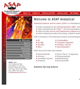 Analytical Solutions and Providers (ASAP Analytical) was established in 1999 for the purpose of providing customers with single source solutions for their analytical requirements. ASAP Analytical is a veteran owned small business that has the ability to service and support any of the solutions that they provide to the customer. Over the past ten years, ASAP has moved from a distributor of laboratory products to a manufacture of analytical instruments.