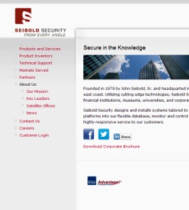 Founded in 1979 by John Seibold, Sr. and headquarted in Rochester, NY, Seibold Security services customers throughout the east coast. Utilizing cutting edge technologies, Seibold Security provides complete, fully integrated security systems for financial institutions, museums, universities, and corporations.